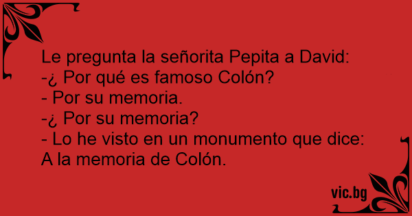 - Lo he visto en un monumento que dice: A la memoria de Colón.