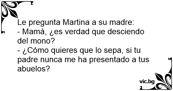 Mamá, mamá ¿es cierto que procedemos de los monos? ¡ nose hijo, tu padre no me presentó a su familia ¡.