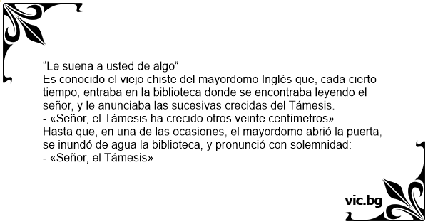 Es conocido el viejo chiste del mayordomo Inglés que, cada cierto tiempo, entraba en la biblioteca donde se encontraba leyendo el señor, y le anunciaba las sucesivas crecidas del Támesis.