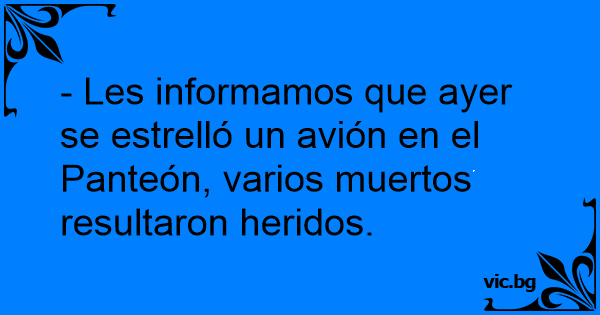 - Les informamos que ayer se estrelló un avión en el Panteón, varios muertos resultaron heridos.