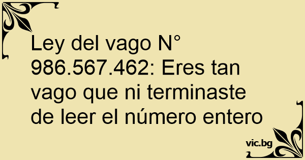 Ley del vago N° 986.567.462: Eres tan vago que ni terminaste de leer el número entero