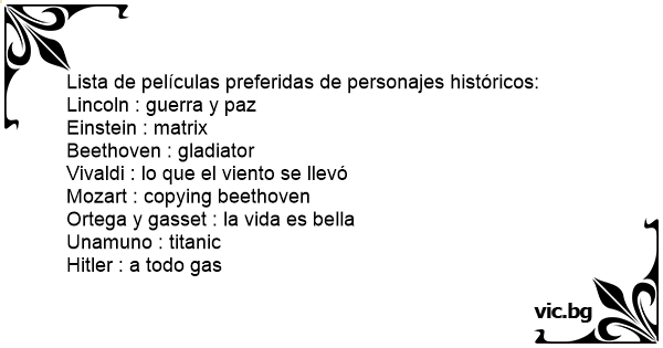 Lista de películas preferidas de personajes históricos: