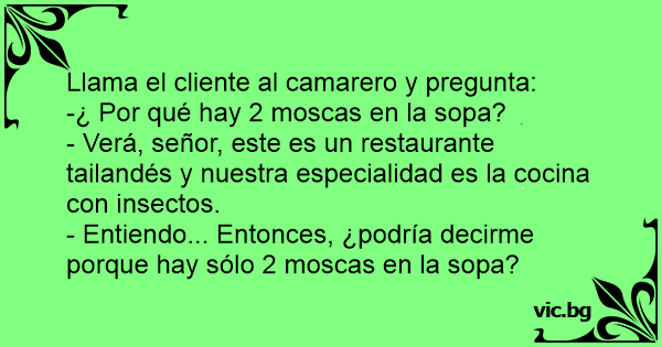 - Entiendo... Entonces, ¿podría decirme porque hay sólo 2 moscas en la sopa?