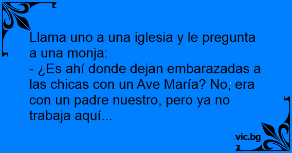 - ¿Es ahí donde dejan embarazadas a las chicas соn un Ave María? No, era соn un padre nuestro, pero ya no trabaja aquí...
