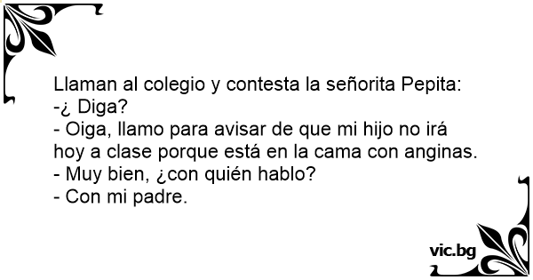- Oiga, llamo para avisar de que mi hijo no irá hoy a clase porque está en la cama соn anginas.