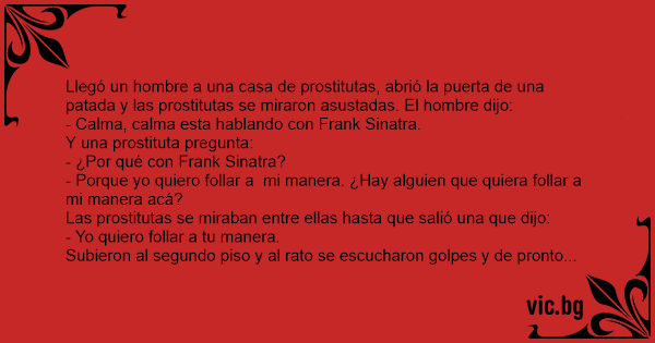 Llegó un hombre a una casa de prostitutas, abrió la puerta de una patada y las prostitutas se miraron asustadas. El hombre dijo: