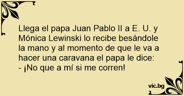 Llega el papa Juan Pablo II a E. U. y Mónica Lewinski lo recibe besándole la mano y al momento de que le va a hacer una caravana el papa le dice: