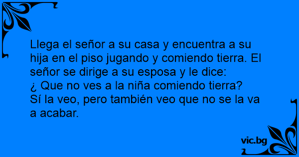 Llega el señor a su casa y encuentra a su hija en el piso jugando y comiendo tierra. El señor se dirige a su esposa y le dice: