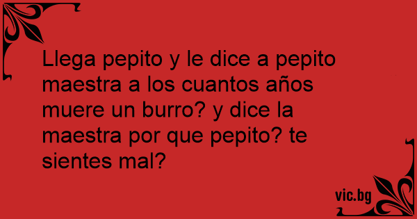 Llega pepito y le dice a pepito maestra a los cuantos años muere un вurrо? y dice la maestra por que pepito? te sientes mal?