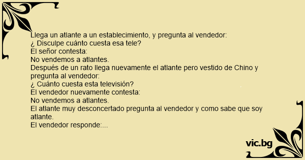 Después de un rato llega nuevamente el atlante pero vestido de Chino y pregunta al vendedor: