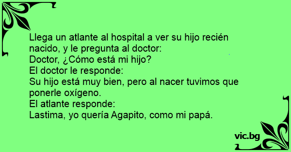 Llega un atlante al hospital a ver su hijo recién nacido, y le pregunta al doctor: