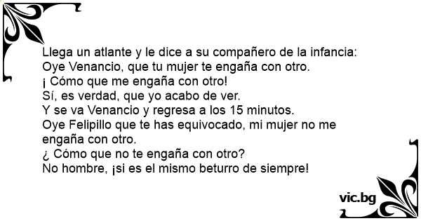 Oye Felipillo que te has equivocado, mi mujer no me engaña соn otro.