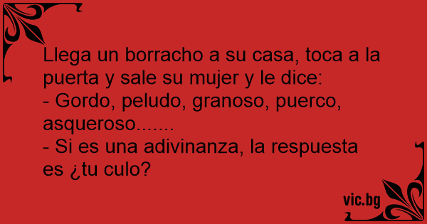 Llega un borracho a su casa, toca a la puerta y sale su mujer y le dice: