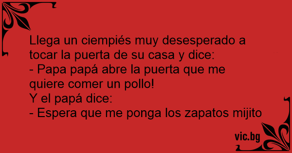 Llega un ciempiés muy desesperado a tocar la puerta de su casa y dice: