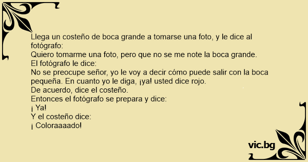 Llega un costeño de boca grande a tomarse una foto, y le dice al fotógrafo: