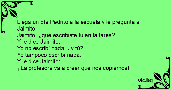 Llega un día Pedrito a la escuela y le pregunta a Jaimito:
