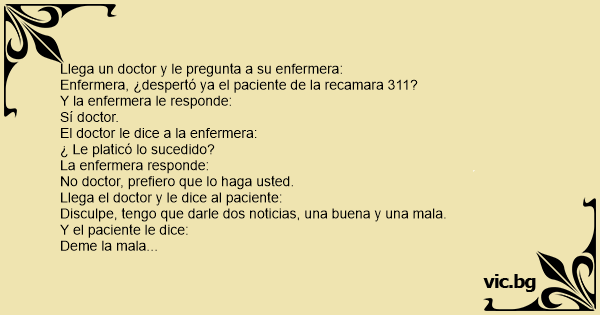 Llega un doctor y le pregunta a su enfermera: