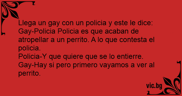 Gay-Policia Policia es que acaban de atropellar a un perrito. A lo que contesta el policia.
