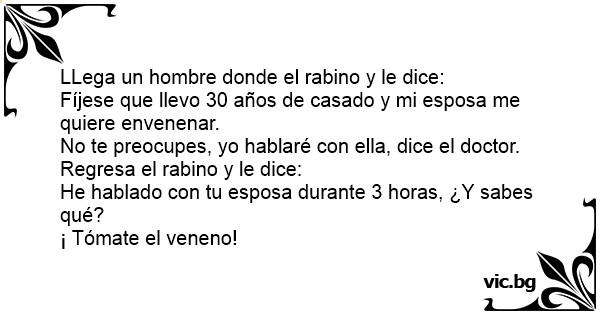 Fíjese que llevo 30 años de casado y mi esposa me quiere envenenar.