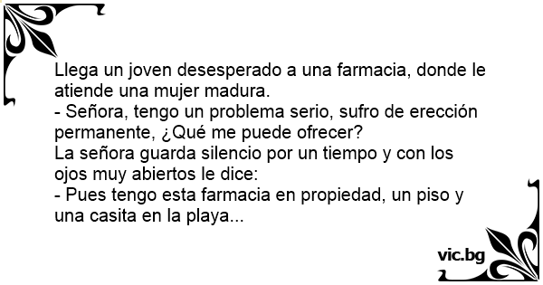 - Señora, tengo un problema serio, sufro de erección permanente, ¿Qué me puede ofrecer?