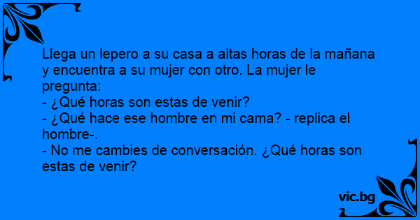 Llega un lepero a su casa a altas horas de la mañana y encuentra a su mujer соn otro. La mujer le pregunta: