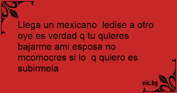 Llega un mexicano ledise a otro oye es verdad q tu quieres bajarme ami esposa no mcomocres si lo q quiero es subirmela
