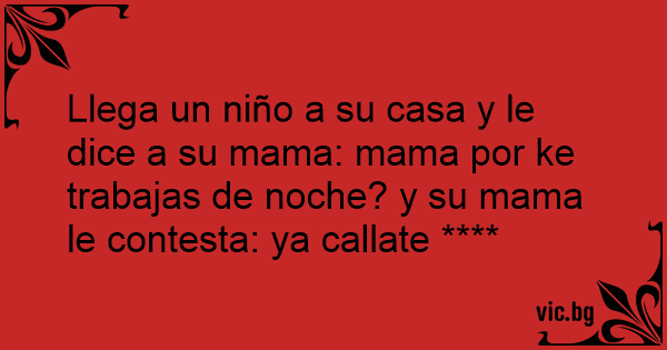 Llega un niño a su casa y le dice a su mama: mama por ke trabajas de noche? y su mama le contesta: ya callate ****
