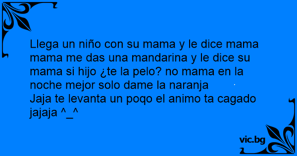Llega un niño соn su mama y le dice mama mama me das una mandarina y le dice su mama si hijo ¿te la pelo? no mama en la noche mejor solo dame la naranja
