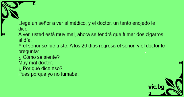 Y el señor se fue triste. A los 20 días regresa el señor, y el doctor le pregunta:
