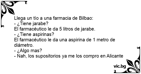 El farmacéutico le da una aspirina de 1 metro de diámetro.