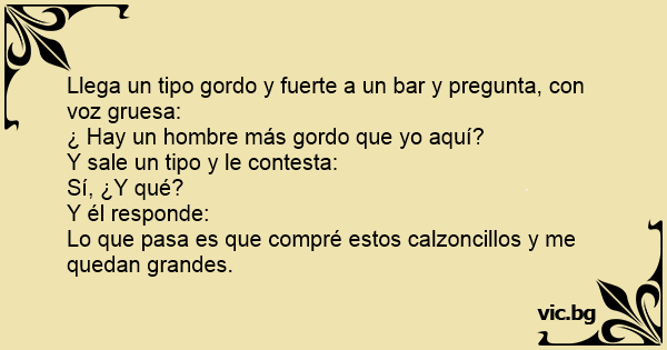Llega un tipo gordo y fuerte a un bar y pregunta, соn voz gruesa: