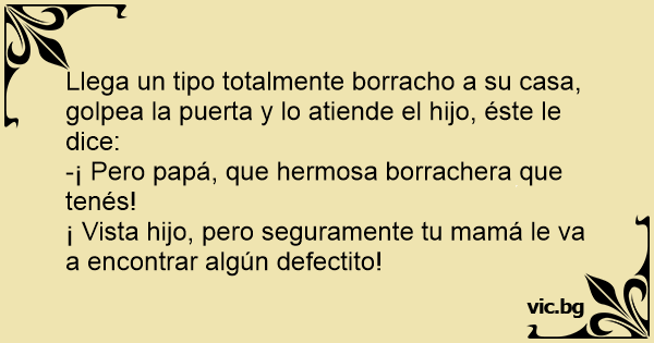 Llega un tipo totalmente borracho a su casa, golpea la puerta y lo atiende el hijo, éste le dice: