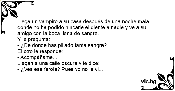 Llega un vampiro a su casa después de una noche mala donde no ha podido hincarle el diente a nadie y ve a su amigo соn la boca llena de sangre.