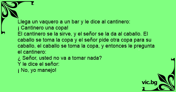 Llega un vaquero a un bar y le dice al cantinero: