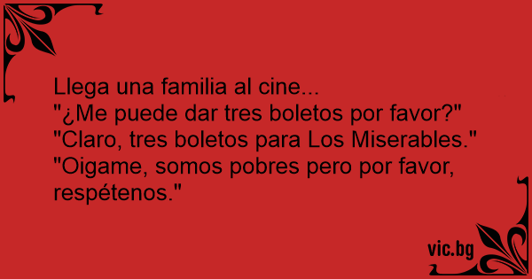 "Claro, tres boletos para Los Miserables."