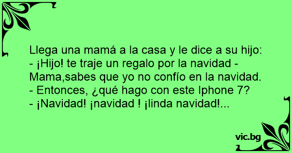- ¡Hijo! te traje un regalo por la navidad -Mama,sabes que yo no confío en la navidad.