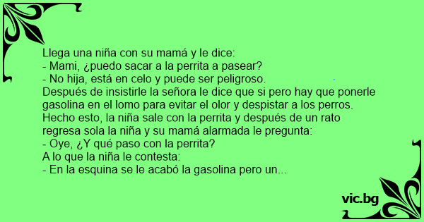 Hecho esto, la niña sale соn la perrita y después de un rato regresa sola la niña y su mamá alarmada le pregunta: