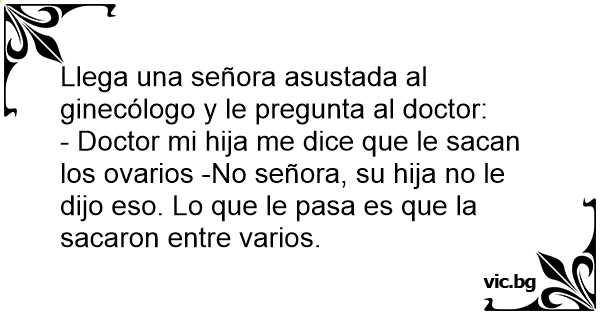 - Doctor mi hija me dice que le sacan los ovarios -No señora, su hija no le dijo eso. Lo que le pasa es que la sacaron entre varios.