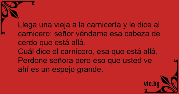 Llega una vieja a la carnicería y le dice al carnicero: señor véndame esa cabeza de cerdo que está allá.