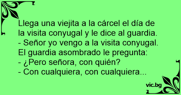 Llega una viejita a la cárcel el día de la visita conyugal y le dice al guardia.