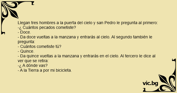 Llegan tres hombres a la puerta del cielo y san Pedro le pregunta al primero: