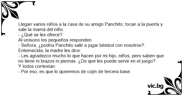 - Señora, ¿podría Panchito salir a jugar béisbol соn nosotros?.