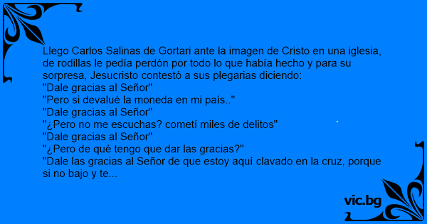 Llego Carlos Salinas de Gortari ante la imagen de Cristo en una iglesia, de rodillas le pedía perdón por todo lo que había hecho y para su sorpresa, Jesucristo contestó a sus plegarias diciendo: