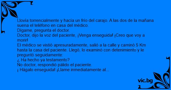 Llovía torrencialmente y hacía un frío del саrаjо. A las dos de la mañana suena el teléfono en casa del médico.
