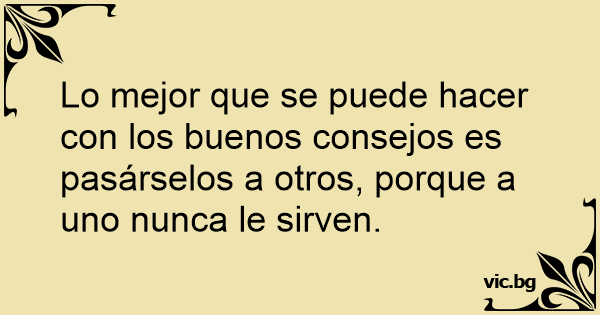 Lo mejor que se puede hacer соn los buenos consejos es pasárselos a otros, porque a uno nunca le sirven.