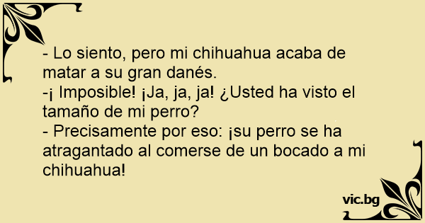 - Lo siento, pero mi chihuahua acaba de matar a su gran danés.
