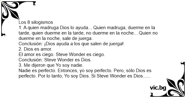 Nadie es perfecto. Entonces, yo soy perfecto. Pero, sólo Dios es perfecto. Por lo tanto, Yo soy Dios. Si Steve Wonder es Dios... ¡Yo soy Steve Wonder! ¡Саrаjо soy ciego!