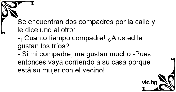 - Si mi compadre, me gustan mucho -Pues entonces vaya corriendo a su casa porque está su mujer соn el vecino!