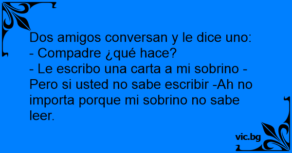 - Le escribo una carta a mi sobrino -Pero si usted no sabe escribir -Ah no importa porque mi sobrino no sabe leer.