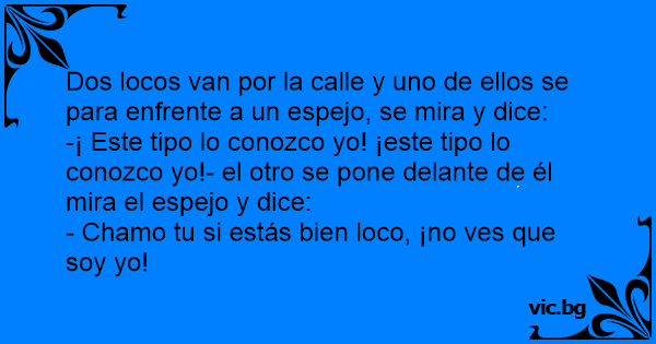 Dos locos van por la calle y uno de ellos se para enfrente a un espejo, se mira y dice: